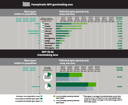 JKDA created three graphs for the William Penn Foundation’s open space preservation and water purity initiatives in 22 counties in Pennsylvania and New Jersey. The graphs deal with the amount of change in preserved open space by county, referendums on open space preservation by local governments, and comparisons in water quality in the grantmaking area and statewide. JKDA also evaluated maps made by the Delaware Valley Regional Planning Commission and offered constructive suggestions for their improvement, which were successfully implemented.