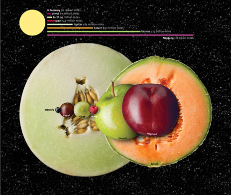 As a child, I was always frustrated by the inability of the astronomy books I read to communicate a sense of the planets’ relative sizes and their (average) orbital distance from the sun. It was impossible for one diagram to show both the sizes of the planets relative to each other and those sizes relative to their orbits.